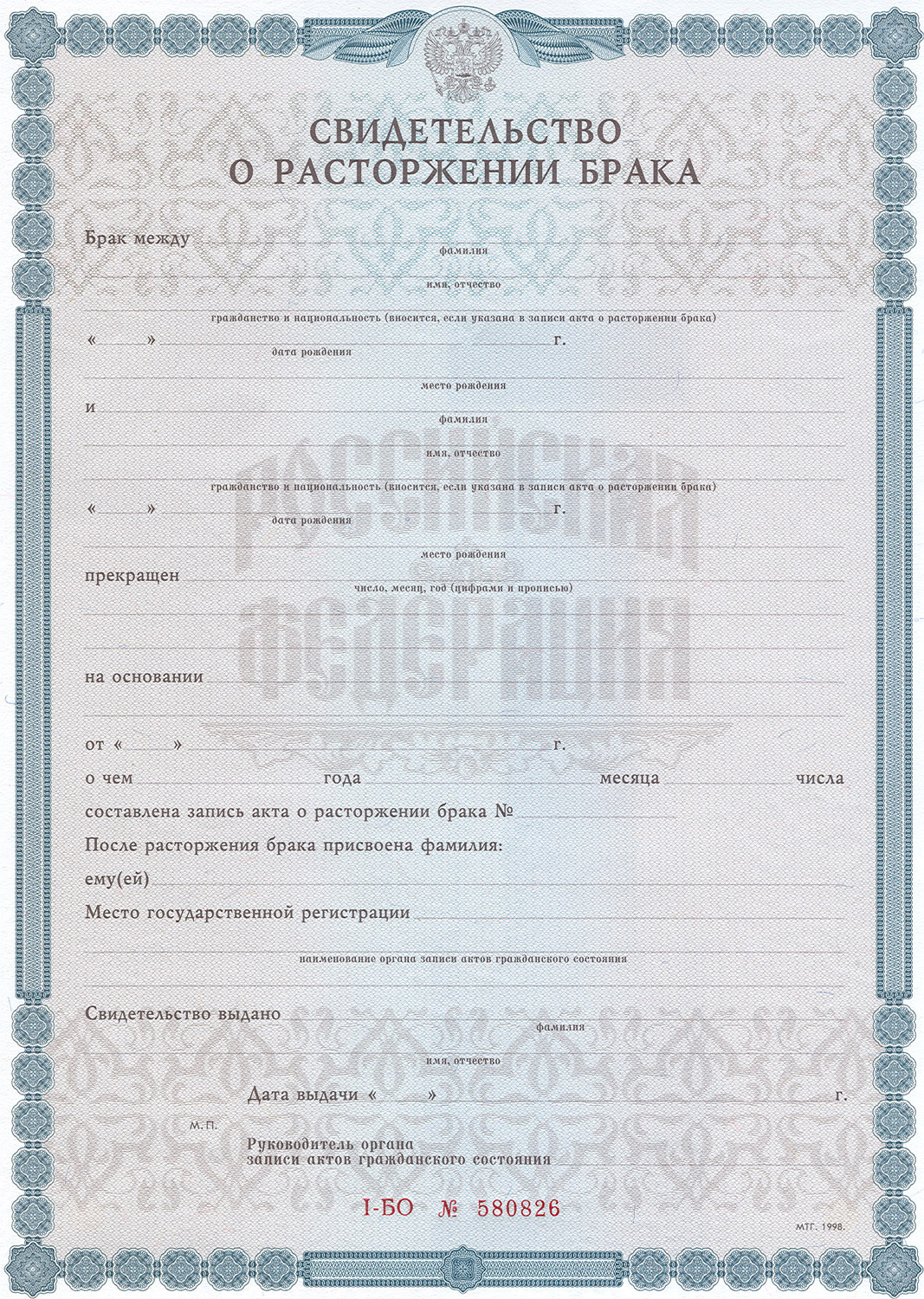 Экземпляр свидетельства о разводе выдается каждому из бывших супругов отдельно. После получения документов мужчина и женщина не имеют общих имущественных прав. Свидетельство о разводе может потребоваться для: